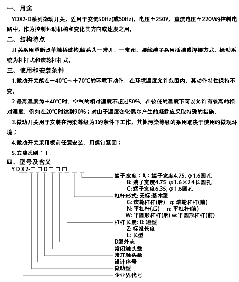 YDX2-D系列微动开关